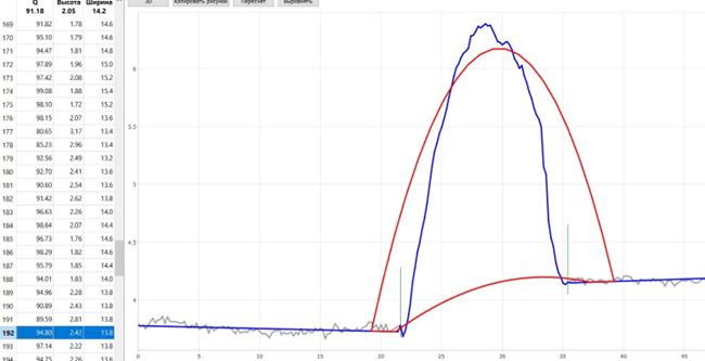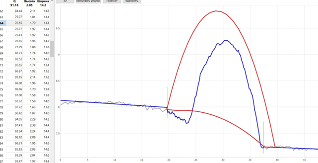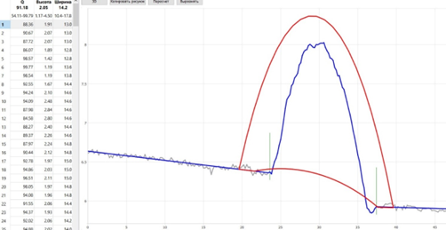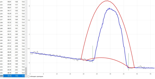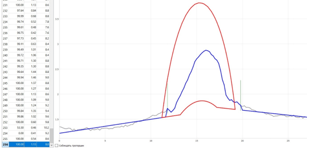• Нюанс (Левая кромка, отметка 22-24): Небольшое «западание» синей линии ниже эталона всё же присутствует, но оно гораздо менее критично, чем в предыдущих горизонтальных сечениях.